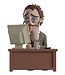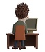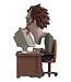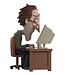 Er ist 12 cm groß, düster und in seine Arbeit vertieft und beugt sich über den trostlosen Computermonitor auf dem Holzschreibtisch vor ihm. Die orangefarbene Brille rutscht ihm von der langen Nase, seine Augenbrauen ziehen sich apathisch über die halb geschlossenen Augen und er hat sein zerzaustes braunes Haar nach hinten gegelt. Er trägt einen moosgrünen Pullover, Bluejeans und Sandalen, und seine zusammengesunkene Haltung unterstreicht, wie erschöpft er wirklich ist. Auf der Außenseite der Verpackung ist er düster bei der Arbeit in einem fahl beleuchteten Raum abgebildet, während die hellgrüne Innenseite mit einem Muster aus Käfern und Ranken bedeckt ist. Die Schutzhülle ist pechschwarz mit weißen Nähten darum herum und ihre Figur ist durch das große, durchsichtige Fenster auf der Vorderseite der Verpackung zu sehen.