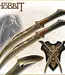 Die Griffe sind aus grünem Holz gefertigt und mit bronzierten Stahlbeschlägen versehen. Diese Replik besteht aus Edelstahl mit Griffen aus Metallguss und Polycarbonat und ist detailgetreu und farblich exakt dem Filmrequisiten nachempfunden. Sie wird mit einer Wandhalterung aus Holz mit einem grafischen Motiv von Tauriel und einem Echtheitszertifikat geliefert.