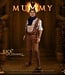 Die Rick-O'Connell-Sammelfigur im Maßstab 1:6 aus der Mumien-Reihe zeigt Brendan Fraser detailgetreu und trägt ein Kostüm bestehend aus Militärhemd, Khakihose und doppeltem Schulterholster. Zur Figur gehören zwei silberne Revolver, eine automatische Pistole, eine Schrotflinte und ein ägyptisches Schwert sowie ein Präsentationssockel und eine bedruckte Kulisse.