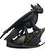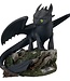 Das fachmännisch geformte Stück verfügt über detaillierte Schuppen, eine glänzende schwarze Oberfläche und handgemalte grüne Augen und ist außerdem mit Ohnezahns spezieller Schwanzflosse und einer malerischen Basis aus Ranken und Felsen versehen.