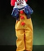Die Pennywise-Figur im Maßstab 1:6 bildet Schauspieler Tim Curry detailgetreu in seiner Rolle als gestaltwandelnder, tanzender Clown nach. Pennywise treibt in der Kleinstadt Derry in Maine sein Unwesen und trägt ein maßgeschneidertes Stoffkostüm, bestehend aus einem weiten gelben Clownsanzug, einem mehrfarbigen Rüschenkragen, leuchtend orangefarbenen Bommeln und einem blau-lila gestreiften Mantel. Seine schaurige Erscheinung wird durch zwei austauschbare Gesichter vervollständigt: eines mit einem Lächeln und das andere mit monströsen Zähnen, beide mit dicker weißer Gesichtsbemalung und künstlichem, rotem Haar.