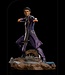 Selbstbewusst und stets einsatzbereit, streckt er seine Finger aus, um Kugeln kosmischer Energie abzuschießen. Als äußerst geschickter Kämpfer mit Millionen von Jahren Training und Erfahrung verliebte er sich in das Rampenlicht von Ruhm, Reichtum und Komfort und etablierte sich in Indien, wo er ein berühmter Star der Bollywood-Filmindustrie wurde. Um seine Unsterblichkeit zu verbergen, täuschte er vor, Nachkomme einer einzigen Schauspielerfamilie zu sein. In seiner violetten Himmelsrüstung bringt Iron Studios die Statue „Kingo BDS – Eternals – Art Scale 1/10“ heraus, die den Schauspieler, Tänzer, Regisseur und Superhelden der Eternals im Kampf gegen die Deviants zeigt.