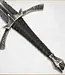 Die 43 cm lange Klinge ist aus 420J2-Edelstahl gefertigt, nicht aus dem Kohlenstoffstahl des Originals, um eine lebenslange Haltbarkeit der Replik bei minimalem Wartungsaufwand zu gewährleisten. Parierstange und Knauf sind aus Metallguss, der Griff ist mit gealtertem Echtleder umwickelt. Zum Lieferumfang gehört eine 25 x 37 cm große Wandhalterung aus Holz mit Siebdruckmotiv. Jede Replik ist auf der Klinge mit einer Lasernummer versehen.