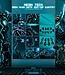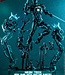 - Glänzende schwarze und türkisfarbene Rüstung mit leuchtenden, reflektierenden Mustern, die unter einer speziellen LED-Lichteinheit sichtbar werden.