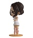 Sie ist 11,7 cm groß, steht auf ihren Zehenspitzen, hat die Arme ausgestreckt und nimmt eine elegante Pose ein. Ihr heiteres Gesicht blickt nach unten, ihr langes Haar fällt zu beiden Seiten herunter, während der Rest zu einem engen Knoten am Hinterkopf hochgesteckt ist. Sie trägt ein schlichtes weißes Kleid mit Schleifen an den Hüften, dessen offener Rücken den Blick auf die Tattoos über ihren Schultern freigibt und ihre Füße in blassrosa Ballettschuhen stecken. Auf der Außenseite ihrer Verpackung tanzt sie in türkisfarbenem Schein, während die Innenseite von einem violetten Dunst umhüllt ist. Die schwarze Schutzhülle weist in der Mitte eine leuchtend blaue Linie auf, und ihre Figur ist durch das große, durchsichtige Fenster an der Vorderseite der Verpackung zu sehen.