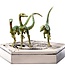 Der Compsognathus, einer der kleinsten jemals gefundenen Dinosaurier, lebte am Ende der Jurazeit in Europa. Er wurde in „Jurassic Park 2: Lost World“ vorgestellt, wo ein Rudel das Mädchen Cathy Bowman angriff, das gerade einen der kleinen Dinosaurier fütterte. Glücklicherweise überlebte sie den Angriff. Später griff ein anderes Rudel den Jäger Dieter Stark an, als dieser sich im Wald der Isla Sorna verirrte. Unglücklicherweise überlebte der Jäger nicht. In „Jurassic World: Das gefallene Königreich“ wurde enthüllt, dass eine Population von Compsognathus auf der Isla Nublar überlebt hat, und in „Jurassic World: Dominion“ bestätigte das Department of Prehistoric Wildlife die Sichtung von Compsognathus in Brasilien, wo sie Müll fraßen, neben ihrer Präsenz in den USA und Europa. Iron Studios präsentiert stolz ihre neue Statue „Compsognathus Jurassic World – Icons“.