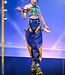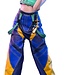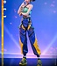 Zoey präsentiert sich in einem maßgeschneiderten Bühnenoutfit für ihre Show „How It’s Done“. Es besteht aus einem türkisfarbenen Neckholder-Crop-Top, kombiniert mit einem goldfarbenen Armband, einem Armreif und einer kleinen Armtasche. Ihre hochgeschnittene Hose im Fallschirmstil besticht durch kräftige Farben und symmetrische Muster, akzentuiert durch einen goldfarbenen Norigae-Anhänger. Abgerundet wird der Look durch klobige, schwarz-gelbe Sneaker, die Zoeys lässigen, urbanen Bühnenstil perfekt widerspiegeln.
