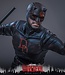 Ein aufregendes Highlight für die Fans dieser Staffel ist Daredevils neu lackierter Anzug! Um während der Fahndung unentdeckt zu bleiben, überzieht Matt seinen roten Anzug und das klassische rote „DD“-Logo auf der Brust mit schwarzer Farbe – eine Anspielung auf seine Shadowland-Ära in den Comics. Im Verlauf der Geschichte blättert die schwarze Beschichtung in brutalen Kämpfen nach und nach ab und gibt den roten Anzug darunter frei. Die Figur gibt seinen Anzug perfekt wieder, mit sorgfältig aufgetragenen Verwitterungseffekten, die Stellen seines roten Anzugs unter der abgekratzten schwarzen Farbe sichtbar machen. Das Outfit wird durch ein komplett schwarzes Design vervollständigt, inklusive Unterarmstulpen, Knieschützern, einem Oberschenkelholster für den Schlagstock und langen Stiefeln.