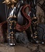 Dieses außergewöhnlich einzigartige Sammlerstück ist 22 Zoll hoch und zeigt im Mittelpunkt ein stoisches Porträt des vertriebenen Helden, das allmählich in eine felsige Oberfläche übergeht, die an die raue Oberfläche der Kampfwelt Sakaar erinnert. Um das Porträt herum ist eine Szene zu sehen, in der der schwer gepanzerte Hulk gegen einen bösartigen „Devil Corker“ kämpft, ein wunderschön detaillierter und vollständig gepanzerter Savage Surfer sowie eine Auswahl an Waffen und Rüstungen, die in ihrem legendären Gladiatorenkampf verwendet wurden.