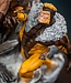 Die Szene mit Weapon X zeigt das wilde Testsubjekt, wie es mit ausgefahrenen Krallen und zwei Wölfen an seiner Seite durch den Schnee stapft. Auf der anderen Seite der Büste ist Wolverine in voller Montur zu sehen, wie er sich in den Kampf gegen seinen Erzfeind Sabretooth stürzt. Diese Deluxe Edition präsentiert Wolverine in seinem klassischen braun-gelben Kostüm.