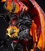 Die Arethyr: Kriegsstatue misst 52,3 cm in der Höhe, 59,5 cm in der Breite und 33,8 cm in der Tiefe und fängt die unbändige Kampflust dieses Dämons perfekt ein. Der Kriegstreiber schwingt das flammende Ätherklingenschwert, während er über ein Feld aus zerbrochenen Waffen und gefallenen Kämpfern stürmt. Seine teuflische Gestalt strahlt rohe Kraft aus, seine ledrigen Flügel sind zum Ausbreiten bereit. Arethyr ist geschützt von einer finsteren schwarzen Rüstung, geschmiedet in den erbarmungslosen Feuern des Krieges, mit monströsen gehörnten Schulterpanzern und einem passenden Gürtelornament um seine Taille. Sein grimmiges Gesicht wird von einer käfigartigen Maske bewacht, die von einer lodernden Feuerzunge gekrönt wird.