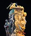 Die Boba Fett Fine Art Büste ist über 20 Zoll hoch und stellt eine originalgetreue Nachbildung des legendären Helms des Kopfgeldjägers dar. Um den Helm herum sind wunderschön geformte Szenen, die wichtige Momente in der Geschichte dieser bei Fans beliebten Figur zeigen, darunter die Tragödie seiner Kindheit und die entscheidende Gefangennahme des Rebellen Han Solo. Die Büste enthält außerdem eine Nachbildung von Cloud City, der schwebenden Metropole, die als Schauplatz so vieler beliebter Momente der Geschichte dient und von orangefarbenen Wolken umkränzt ist, die in eine ätherische Vision des mandalorianischen Wappens übergehen, das sich in der Atmosphäre zu bilden scheint.