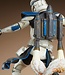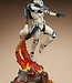 Auf seinen Befehl! Die 27 Zoll große, 15 Zoll breite und 15 Zoll tiefe Captain Rex Premium Format Figur schwingt zwei Blaster, als er über einem verbrannten Schlachtfeld in die Luft steigt. Graue und weiße Rauchwolken verwandeln sich in leuchtend gelbe und orange Flammen, die aus seinem Jetpack strömen. Ein kaputter und verbrannter Spider Droid™, dessen Teile verstreut und geschmolzen sind, trägt die Hauptlast von Captain Rex‘ effektivem Angriff. Mit diesem Soldaten am Himmel scheint der Sieg der Republik sicher.