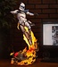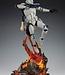 Auf seinen Befehl! Die 27 Zoll große, 15 Zoll breite und 15 Zoll tiefe Captain Rex Premium Format Figur schwingt zwei Blaster und startet über einem versengten Schlachtfeld in die Luft. Graue und weiße Rauchwolken verdrehen sich zu leuchtend gelben und orangefarbenen Flammen, die aus seinem Jetpack emporschießen. Ein zerbrochener und ausgebrannter Spider Droid™, dessen Teile verstreut und geschmolzen sind, trägt die Hauptlast von Captain Rex' effektivem Angriff. Mit diesem Soldaten am Himmel scheint der Sieg der Republik sicher.