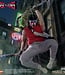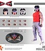Inspiriert von seinem rauen Streetstyle trägt Casey Jones vom One:12 Collective ein ärmelloses rotes Stricktop, Jogginghosen und Sneakers. Sein Look verkörpert rohe urbane Gerechtigkeit.