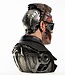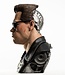Jedes Detail erzählt die Geschichte eines unerbittlichen Kampfes: von den Schusswunden und der aufgerissenen Haut, die mechanische Bauteile freilegt, bis hin zu den zersplitterten Brillengläsern und der blutbefleckten Kleidung. Das rechte Auge leuchtet bedrohlich rot und erweckt die kalte Präzision der Maschine inmitten der Kriegsnarben zum Leben.