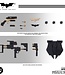 Batman ist mit einem Arsenal an Gadgets von Wayne Enterprises ausgestattet und verfügt über einen Haftbombenwerfer, mehrere Batarangs, eine Enterhakenpistole mit Haken, am Gürtel befestigte Taschen, eine Joker-Karte und mehr.