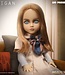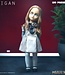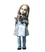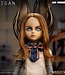 Mit ihrem wachsamen Blick trägt diese Killerroboterpuppe ihr typisches Outfit: ein grau-weiß gestreiftes Hemd unter einem beigen Kleid mit Fliege, weiße Strümpfe und klassische schwarze Mary Janes. Ihr aschblondes, mittig gescheiteltes Haar fällt ihr bis knapp über die Schultern und umrahmt ihre stechend blauen Augen, die jede Bewegung zu verfolgen scheinen.