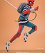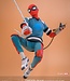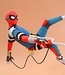 Diese Figur im Maßstab 1:6 trägt Spider-Mans klassischen selbstgemachten Anzug, kombiniert mit marineblauer Sportbekleidung, einem roten, mit Stoff bedeckten Kopf mit Maske und schützenden roten Knieschützern.