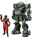 1/12 Scopedog Ver.1.5 is a 1/12th scale figure, approximately 13" (33cm) tall. It features threezero's detailed and weathered paint application, and has approximately 100 points of articulation points. The visor at the head, cockpit hatch at the chest, and maintenance hatch at the stomach can all be lifted open to show the cockpit inside, where the articulated pilot figure can be placed. The "Turret Lens" on the visor of can rotate to replicate the different zoom features of the camera. Both forearms can be extended via spring for the "Arm Punch" attack feature. Its finger joints are fully articulated. Each foot has a tire for the "Roller Dash" feature installed at the sole, which deploys when the front tip of the foot is lifted up. The "Turn Pick" at the side of each foot can be extended. Furthermore, its legs can be transformed to take the crouching mode, where the pelvis joints can be adjusted vertically in 3-steps to adjust the leg length to be utilized for the crouching mode transformation as well as for wider articulation of the joints.