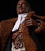 Candyman is shown pulling open his jacket to reveal his grotesque bee-covered torso, sculpted and painted with disgusting detail to depict every bit of gore and viscera. The mixed media costume includes his iconic brown fur-lined jacket, white scarf and gray slacks. The jacket is fitted with wires throughout to allow collectors to adjust for the perfect display.