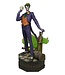 The Joker Quarter Scale Maquette is fully sculpted and measures 24" tall x 14" wide x 12" deep. This detailed DC statue boasts a variety of unique sculpted textures, from the fabric-like design of his costume to the wood and metallic elements of the base. The Joker's signature sinister grin gives the gaunt villain a menacing look, with yellowed teeth contrasting with his pale complexion. Do you dare to pick a card?