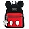 Backpack inspired by Disney's Mickey Mouse. Top zip around closure. Interior back wall zip pocket, front wall card slot.