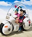 The set includes the motorcycle, a stand set, optional skirt and pair of optional hands(L/R) for S.H.Figuarts Bulma, and Non-movable Son Goku figure.