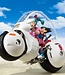 It also includes an in-scale Goku. Plus, the stand lets you pose the bike statically, as if riding, or popping a wheelie!