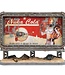 Second in our growing collection of desktop-sized billboard replicas from the world of Fallout™, this one features some… intriguing reading material in the back, and a few bits and pieces of the Wasteland beneath. Also included are four UV-printed artworks that hearken back to a charming old world full of optimism and joy. Which one shall you display today?