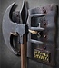 This amazingly detailed and realistically weathered Axe is an impressive 22" long, and 11" across the axe head. It comes complete with a themed display wall plaque, evoking elements of The Creeper's truck, and utilizing his Throwing Stars to hang the Axe on.