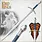 An ancient sword carried by Gandalf the Grey, who is an old, but powerful wizard and friend to Frodo Baggins. Glamdring, a magical sword, serves Gandalf in his mission to aid the Fellowship of the Ring. It was made by ancient Elves, and is inscribed with runes in the Elven language that say Turgon Aran Gondolin, Tortha gar a matha Glamdring, Vegil Glamdring gud daelo, Dam an Glamhoth which translates to Turgon, King of Gondolin, Wields, has and holds the sword Glamdring, Foe of Morgoth´s realm, Hammer of the Orcs.