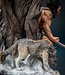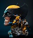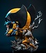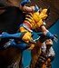 The Weapon X scene features the feral test subject trudging through the snow with his claws bared and a pair of wolves at his sides. On the other side of the bust Wolverine is shown in his famous blue and yellow costume, leaping into battle against his arch enemy Sabretooth.