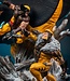 The Weapon X scene features the feral test subject trudging through the snow with his claws bared and a pair of wolves at his sides. On the other side of the bust Wolverine is shown in full costume, leaping into battle against his arch enemy Sabretooth. This Deluxe Edition features Wolverine in his classic brown and yellow costume.