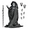Looking as if he just stepped off the silver screen, this 7-inch scale figure of the Phantom (Erik) in his iconic "Red Death" disguise from the masquerade ball captures the haunting elegance of Lon Chaney’s classic portrayal. Hiding his disfigured face beneath the skull mask, he spies on Christine and Raoul on the rooftop of the Paris Opera House. This collectible includes a soft goods cloak, large brim hat, and skull staff accessories.
