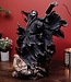 Measuring 21.46 inches (54.5 cm) tall, 16.9 inches (42.3 cm) wide, and 16.9 inches (42.3 cm) deep, the Darth Nihilus™ Statue is the grotesque embodiment of insatiable emptiness. With his dark cloak consuming all the space around him, Darth Nihilus leaps from a fragmented tomb surrounded by barren desert landscape. The weathered red rocks turn to the rusty color of dried blood when struck by this vicious villain's Lightsaber™. He drains Force energy from every creature on his quest to preserve his own life, turning his heart as black as the robes he wears.