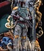 The Boba Fett Fine Art Bust stands over 20" high and centers on a faithful recreation of the bounty hunter's iconic helmet. Surrounding the helmet are beautifully sculpted scenes depicting important moments in this fan-favorite character's history including the tragedy of his childhood and his pivotal capture of the rebel, Han Solo. The bust also includes a recreation of Cloud City, the floating metropolis that serves as the setting for so many beloved story moments, wreathed in orange clouds that transition to an ethereal vision of the Mandalorian crest seeming to form in the atmosphere.