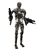 Inspired by the battle-damaged look of the Endoskeleton from Terminator 2: Judgment Day, this collectible action figure features a newly developed metallic skeleton that has been expertly electroplated and weathered to highlight its intricate mechanical details and battle-damaged appearance, staying true to the film. The Endoskeleton skull is equipped with LED-lit red eyes that add a striking touch. The figure also includes interchangeable components, such as a chest plate, an upper arm, and a right thigh plate, allowing fans an extra display option for its regular look. Plus, it comes with a specially designed skull-themed figure base.