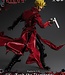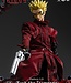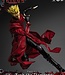 Standing about 31cm (12") tall, the figure has approximately 32 points of articulation, allowing for smooth, dynamic poses that capture Vash's wild combat style. Vash's signature red trench coat is crafted from a super-thin, flexible and durable material, with specialized tailoring to replicate wrinkled textures and light weathering from extended wear in No Man's Land. Embedded wiring in his coat allows for easy posing, while the surface has a leather-like sheen that increases the material's resilience. The look is finished with dark brown trousers, the iconic straps on his left arm, and dark brown boots-meticulously detailed for true accuracy to the character design.