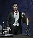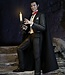 Standing in 7 inch scale, the Ultimate Dracula (Transylvania) action figure has a soft goods cape and comes in premium anniversary packaging with plenty of accessories: 3 interchangeable heads, interchangeable hands, large bat, wine bottle, goblets, candlestick and serving plate.