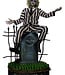 De Beetlejuice Premium Format Mixed Media™-figuur is 53,8 cm hoog x 37,5 cm breed x 32,2 cm diep en heeft zacht, synthetisch haar op het gezicht van de grijnzende griezel dat licht gestyled kan worden om zijn chaotische uiterlijk te behouden. Zijn kenmerkende zwart-wit gestreepte pak, witte onderhemd en zwarte stropdas zijn allemaal op maat gemaakt en hebben een verweerde look, waardoor BJ er net zo fris uitziet als het vuil onder de madeliefjes die de Maitlands nu aan het verbouwen zijn! De figuur wordt ook geleverd met een verwisselbare open linkerhand, voor het geval je vindt dat dat stoffige oude boek te veel op een stereo-handleiding lijkt.