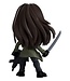 Met een lengte van 10,9 centimeter, een katana in haar rechterhand en een machinegeweer in haar linkerhand, waaiert lang, golvend bruin haar uit rond haar met bloed besmeurde gezicht terwijl ze voor zich uit staart. Ze draagt een legergroene jas die opzij zwaait, een donkere trui met een dikke kraag en een grijze broek, terwijl zwarte handschoenen bij haar dikke laarzen passen. De buitenkant van haar verpakking kijkt neer op een met bloed bedekte ballerina met muziekdoos, terwijl de binnenkant bedekt is met een paarse waas. De zwarte beschermhoes heeft een gloeiende blauwe lijn in het midden, waardoor haar figuur zichtbaar is door het grote, doorzichtige venster aan de voorkant van de verpakking.
