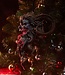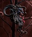 Het Krampus-ornament is een handgeschilderd, angstaanjagend portret van deze beroemde folkloristische figuur, ongeveer 16,5 cm hoog en 13 cm breed. Zijn grommende gezicht wordt omlijst door een enorme, knoestige baard en gebogen hoorns, terwijl zijn doordringende gouden ogen, puntige tanden en kronkelende tong hem eerder eng dan vrolijk maken voor iedereen die hem op een koude winternacht tegenkomt. De achterkant van dit gebeeldhouwde ornament is voorzien van een zilveren Sideshow-zegel, geplaatst op een rode strik met belletjes en dennenappels om de iconische alpine uitstraling compleet te maken. Een zwart stoffen lint aan de bovenkant van het portret maakt het mogelijk om dit unieke Sideshow Originals Krampus-verzamelobject op te hangen waar u maar wilt.
