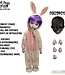 - Een verweerd konijnenkostuum met geïntegreerde poseerdraad in de oren