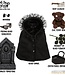 - Een (1) zwarte fluwelen jurk met satijnen kraag en manchetten