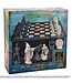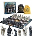 Gedetailleerde plastic Lord of the Rings schaakstukken op een kartonnen bord.
