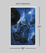 De Heraut van Galactus wordt omringd door sterren in deze buitenaardse illustratie. Alleen in een asteroïdenveld overpeinst Norrin Radd zijn plaats in de kosmos, die lijkt te versmelten met de glinsterende blauwe hemel om hem heen. Het strenge gezicht van de Silver Surfer wordt weerspiegeld op zijn metalen bord – een introspectief beeld van zichzelf, herhaald en onontkoombaar.