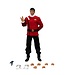 Spock draagt zijn klassieke rode Starfleet-uniform, gemaakt van echte stof, met 22 bewegingspunten voor dynamische poses. De set bevat een filmnauwkeurige Type-II-phaser, handschoenen in een milieupak en verwisselbare handen, inclusief zijn iconische Vulcan-groet.