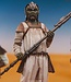 Geïnspireerd door het personage in Return of the Jedi™, draagt dit volledig beweegbare, uiterst flexibele en hoogwaardige Star Wars-figuur op maat gemaakte stoffen kleding die perfect past bij zijn outfit op het scherm. Zijn outfit bestaat uit een bruin vest, broek en capuchon, evenals een harnas dat past bij een handlanger in de entourage van Jabba the Hutt. Het Klaatu™ Sixth Scale High-End verzamelfiguur draagt ook een riem vol thermische detonators over zijn borst en bevat een paar ontspannen handen en een paar grijphanden voor het vibrostaff-accessoire.