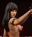 Geïnspireerd door de pulpposters uit de jaren 70, is het Vampirella 1:2-beeldje 112 cm hoog en legt haar bovennatuurlijke proporties en buitenaardse charme perfect vast. Dit volledig gebeeldhouwde verzamelobject is prachtig gedetailleerd en legt haar slanke spieren en zelfverzekerde, ontspannen houding vast. Haar dieprode kostuum is geverfd met een glanzende afwerking die perfect past bij de bloedige schedels die de grond onder haar zwarte stiletto's bezaaien.